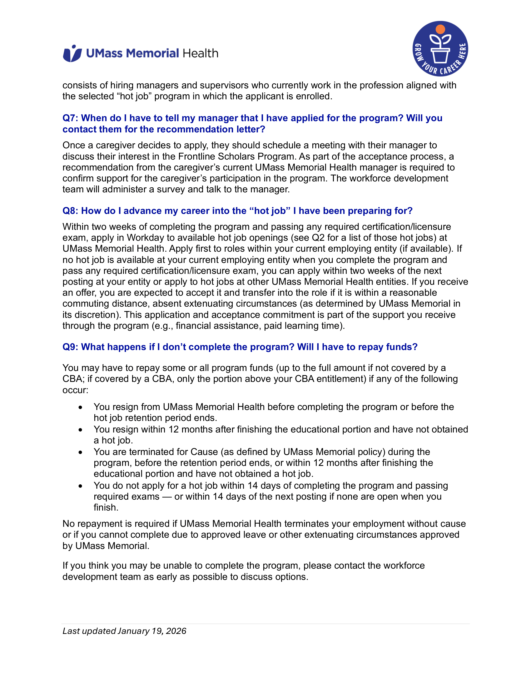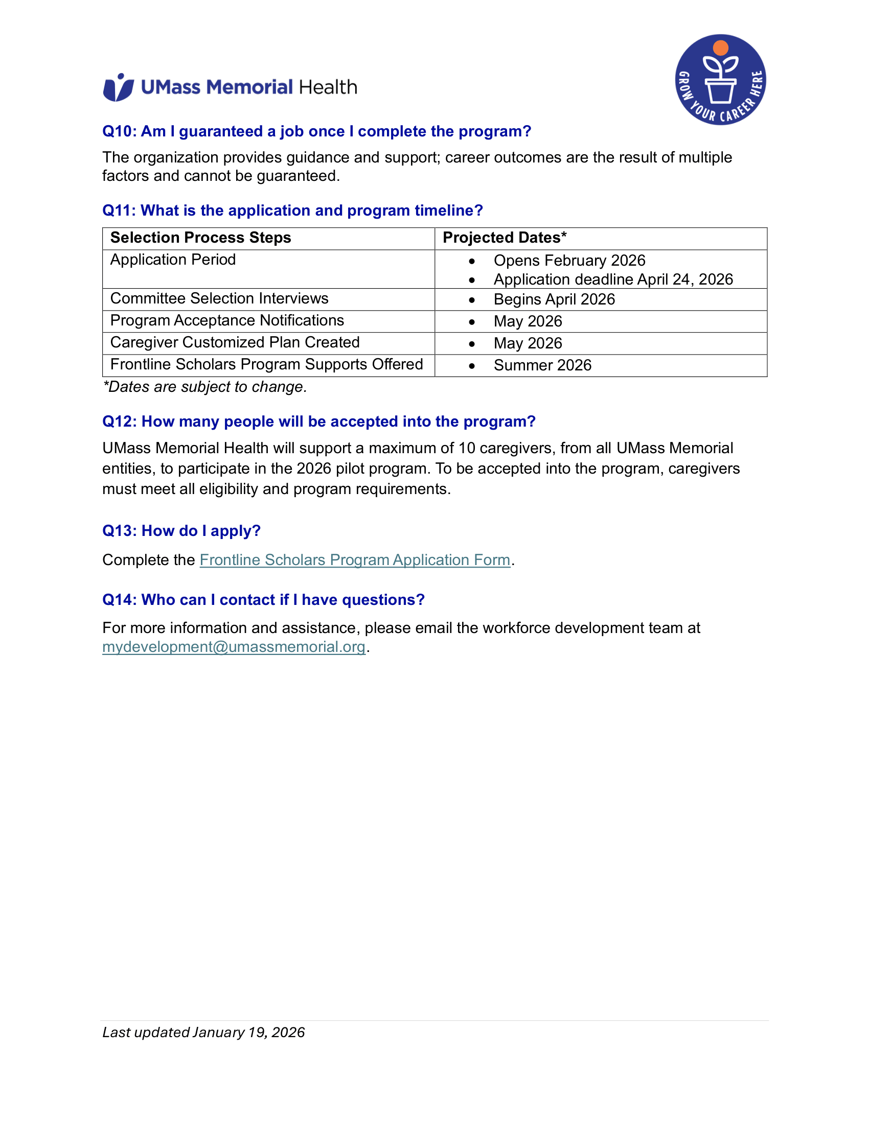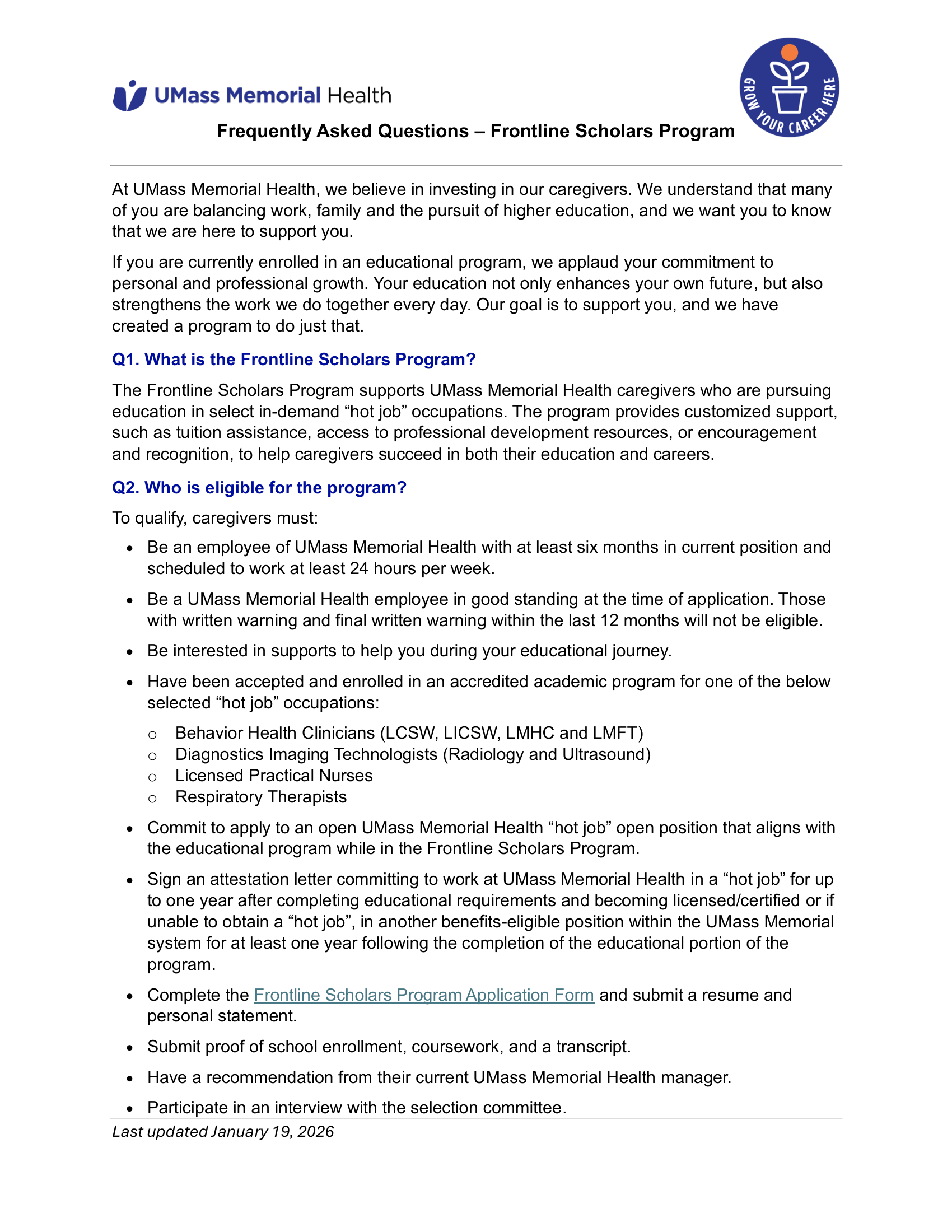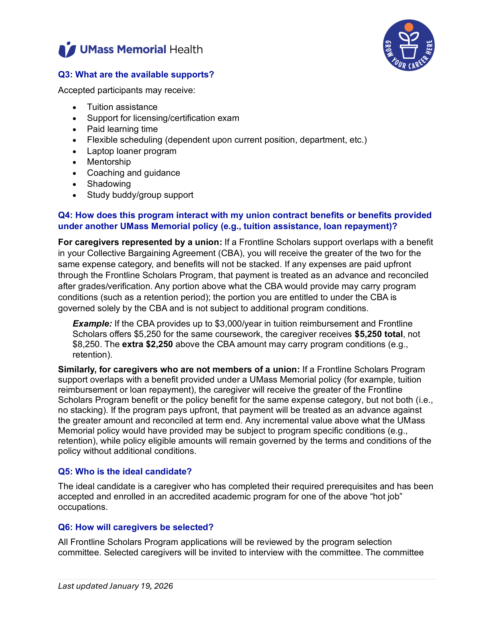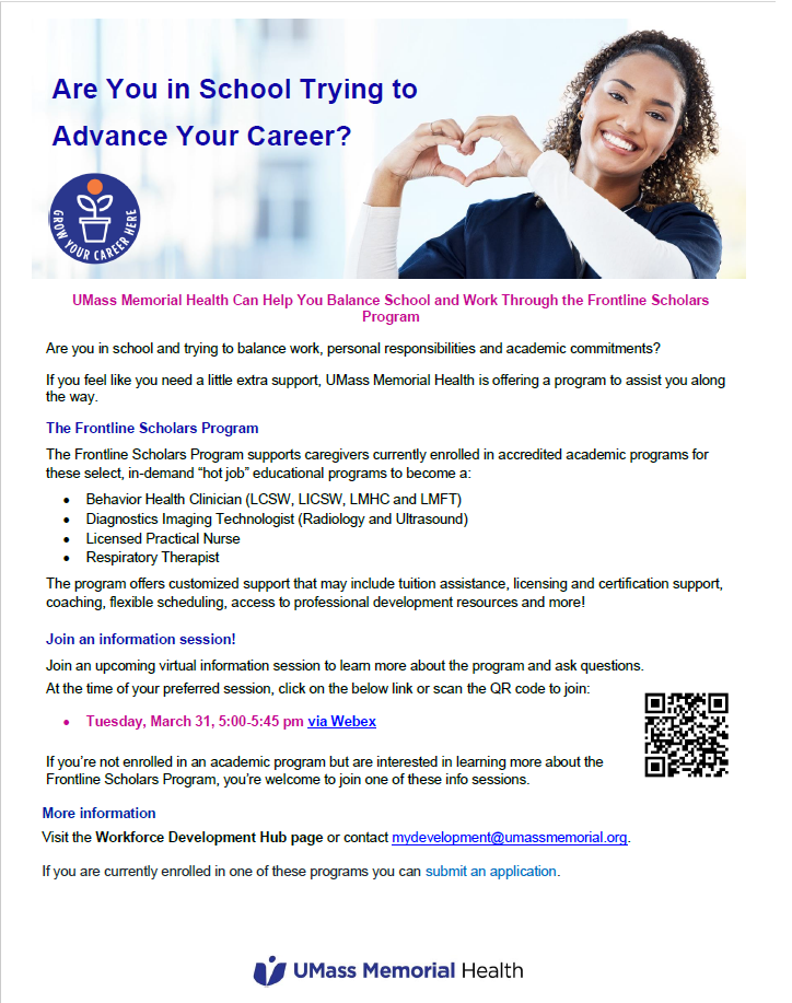 SHARE is excited to support UMass Memorial’s Frontline Scholars Program, which provides support to caregivers in certain degree programs.